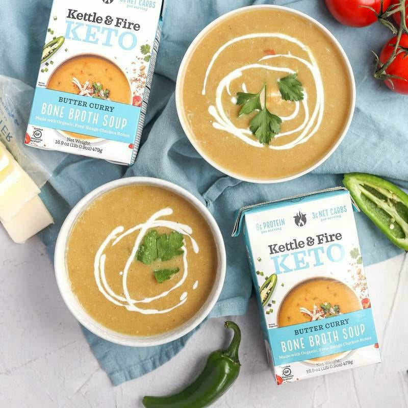 Una decadente sopa que hace girar el caldo de hueso de pollo, el curry de masala, la crema de coco y la mantequilla de vacas alimentadas con pasto para una deliciosa, auténtica y clásica sopa india keto friendly.