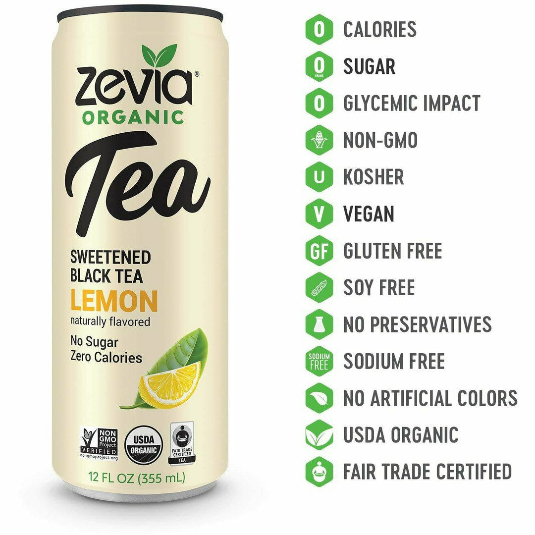 Ingredientes limpios: té negro preparado orgánico (agua purificada, té negro orgánico), sabores naturales orgánicos, ácido cítrico, extracto orgánico de hoja de Stevia. Zevia está hecha con amor usando ingredientes reales; nunca edulcorantes artificiales, colores o ingredientes.
