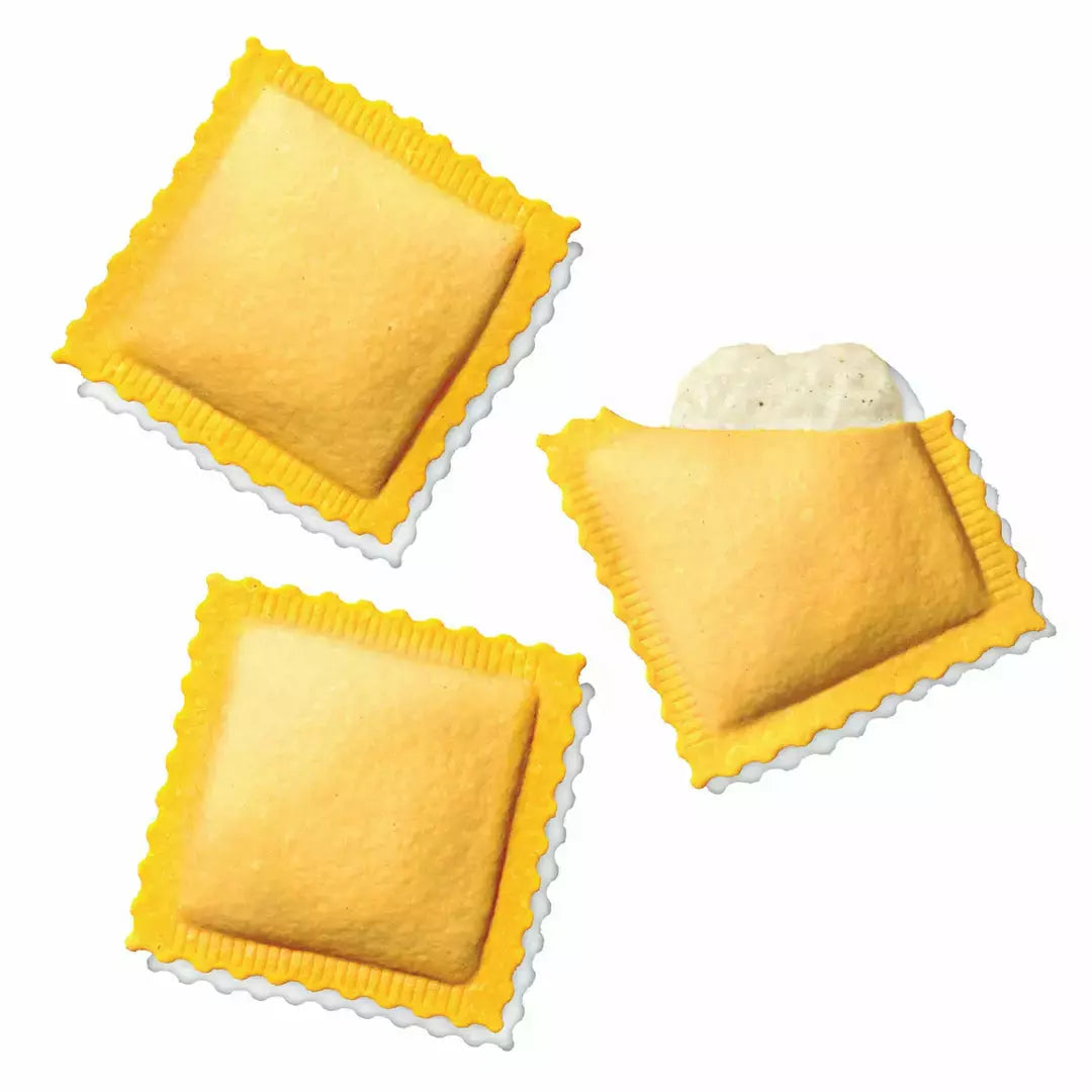 Así que vamos a dejar que el queso ricotta, mozzarella, parmesano, fontina y asiago formen parte de nuestros nuevos y deliciosos raviolis de cinco quesos. ¡Cinco puede parecer mucho, pero intenta decirle a uno de ellos que no están incluidos!