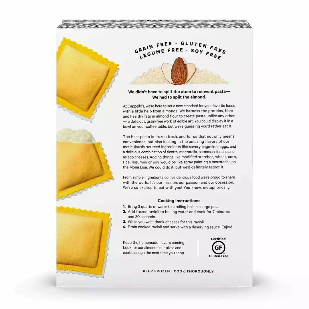 Ricotta cheese (whey, milk, cream, vinegar), egg, tapioca flour, almond flour, low moisture mozzarella cheese (pasteurized milk, skim milk, salt, cheese cultures, enzymes), cream (cream, milk), water, parmesan cheese (milk, cheese cultures, salt, enzymes), xanthan gum, fontina cheese (milk, cheese cultures, salt, enzymes), asiago cheese (milk, cheese cultures, salt, enzymes), sea salt, garlic powder, onion powder, black pepper, turmeric.